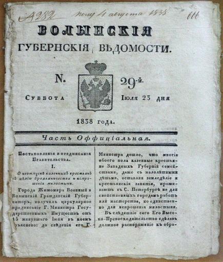 MAKE A MEME View Large Image Волынские губернские.JPG Пе вая ст аница газеты «Волынские губе нские ведомости» за 23 июля 1838 года Волынский к аеведческий музей ...