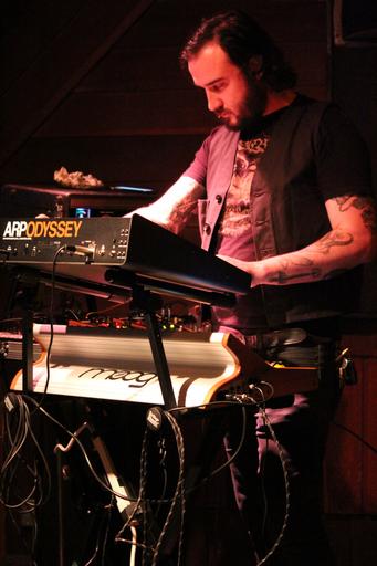 Keywords: meridian arc heavy noisey weird loud rock metal industrial noise harsh kenton club portland pdx show band venue concert live music dark indoor piano performer musician people stringed instrument Meridian Arc Meridian Arc