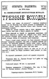 View Original: | Объявление об открытии на 1914 г. подписки на ежемесячный литературный журнал «Трезвые всходы» 02.png (1399x2259) | |||