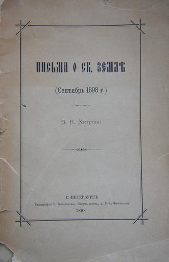 Keywords: Хитрово В.Н. Письма о Св. Земле. Сентябрь 1898 г. (1898) — Титульный лист.jpg Image page PD-RusEmpire User Senapa/TemplateSenapaLib Literary works by Vasily Khitrovo Books from Russia 1898 Books published in Saint Petersburg Title pages from Russia Title pages uploaded by Steven Pavlov from various sources |