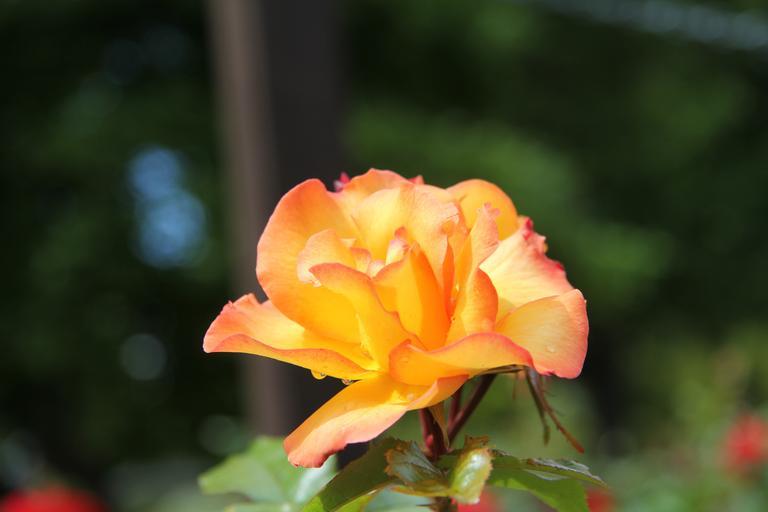 | Keywords: plant flower outdoor depth of field Rose 'Tequila Sunrise' Red blend Hybrid Tea. Registration name: DICobey Exhibition name: Tequila Sunrise Bred by Patrick Dickson (United Kingdom, 1988). Florists Rose, Hybrid Tea. Yellow and red, red edges. Mild fragrance. 40 petals. Medium, full (26-40 petals), cupped bloom form. Blooms in flushes throughout the season. Height of 30" to 32" (75 to 80 cm). Width of up to 2' (up to 60 cm). Rose 'Tequila Sunrise' Red blend Hybrid Tea. Registration name: DICobey Exhibition name: Tequila Sunrise Bred by Patrick Dickson (United Kingdom, 1988). Florists Rose, Hybrid Tea. Yellow and red, red edges. Mild fragrance. 40 petals. Medium, full (26-40 petals), cupped bloom form. Blooms in flushes throughout the season. Height of 30" to 32" (75 to 80 cm). Width of up to 2' (up to 60 cm). |