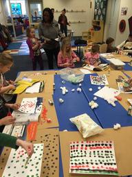 Keywords: indoor Art exploration based on the art of Romare Bearden. Kids create their own one-of-a-kind collages using recycled materials. Central Library, April 5, 2016. www.kpl.gov Art exploration based on the art of Romare Bearden. Kids create their own one-of-a-kind collages using recycled materials. Central Library, April 5, 2016. www.kpl.gov