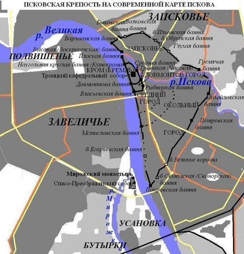 Keywords: Псков.град.jpg BadJPEG ru Псковская к епость с башнями на сов еменной ка те Пскова own PlatonPskov 2011-03-16 Cc-zero Maps of Pskov