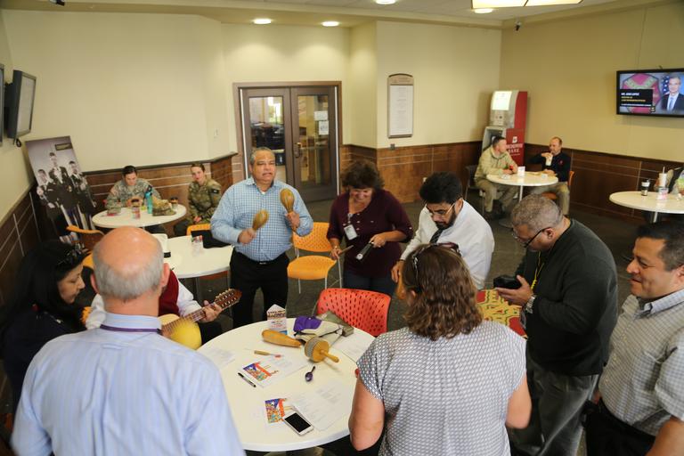 Keywords: IMCOM employees take a brief lunch break to participate and learn about the Caribbean Christmas Tradition called "Parranda."