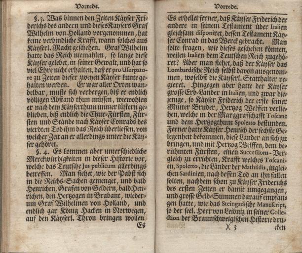 Keywords: JPGundlingB1 020.jpg JPGundlingB1_ jpg 019 021 This is a scan of the historical document with the title <br/>Geschichte und Thaten Kayser Konrad des Vierten aus dem Geschlecht der Herzoge von Schwaben / wie auch Kayser Wilhelms aus dem Geschlecht der Grafen von Holland/ Aus den Schriften selbiger Zeit und anderen Dokumenten own scan from original book 1719 Jacob Paul von Gundling Jacob_Paul_von_Gundling_B1 PD-old-100
