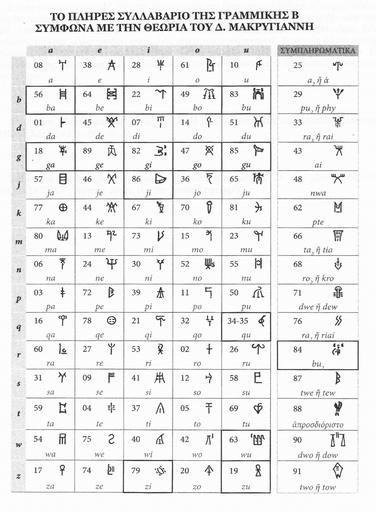 | Keywords: ΤΟ ΠΛΗΡΕΣ ΣΥΛΛΑΒΑΡΙΟ ΣΥΜΦΩΝΑ ΜΕ ΤΗΝ ΘΕΩΡΙΑ ΤΟΥ Δ. ΜΑΚΡΥΓΙΑΝΝΗ.jpg gr ΤΟ ΠΛΗΡΕΣ ΣΥΛΛΑΒΑΡΙΟ ΤΗΣ ΓΡΑ ΙΚΗΣ ΓΡΑΦΗΣ Β ΣΥ ΦΩ Α Ε ΤΗ ΘΕΩΡΙΑ ΤΟΥ Δ ΑΚΡΥΓΙΑ Η en Complete Linear B syllabary according to the theory of Makrygiannis <br> High Resolution expandible Table own ΚΩΣΤΑΣ ΑΚΡΥΓΙΑ ΗΣ 2011-09-20 Cc-zero Linear B Linear B tablets Syllabary charts | ||||