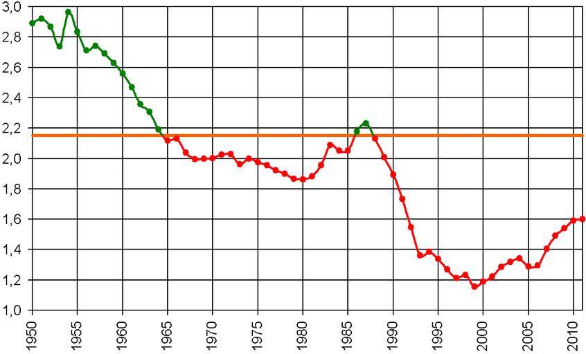 View Original:Изменение суммарного коэффициента рождаемости в России (1950 - 2011).PNG (1161x703)