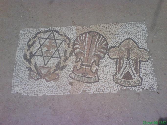 | Keywords: פסיפס שקמה.JPG he ×¡×ž× ×™ השומר הצעיר בפסיפס בבית ספר שקמה ביד מרדכי en Symbols of Hashomer Hatzair on the flor of Shikma highscool in Yad Mordehai Kibutz Writen in hebrow on the right symbol Bney Mtzda Sons of Mesada and on the ather symbols Hazak Ve'Ematz Strong and Courage Own Nizzan Cohen 2009-04-22 Hashomer Hatzair Yad Mordechai Mosaics in Israel 20th-century mosaics | ||||