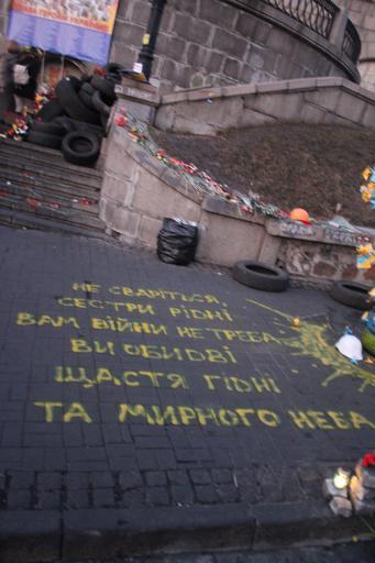 Keywords: "Не сваріться".JPG uk адпис на вул ебесної Сотні Інститутській 9 03 2014 2014-03-09 18 19 13 own A1 cc-zero Uploaded with UploadWizard Art of Euromaidan Euromaidan in Kiev March 2014