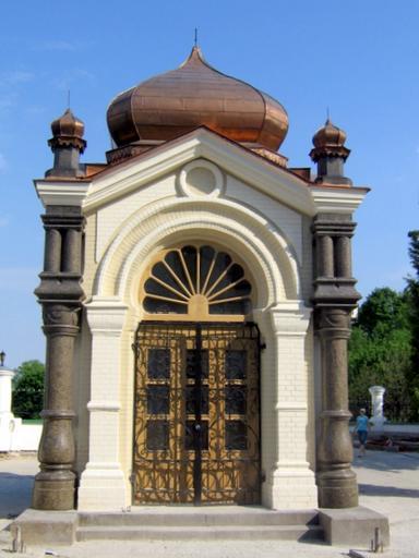 Keywords: Могила Безак.JPG 80-382-0341 uk Часовня на те ито ії Києво-Пече ської лав и в якій захо онено п ах Олександ а Павловича Безака і його д ужини own Kamelot 10 05 2009 Kiev Pechersk Lavra House of Bezak