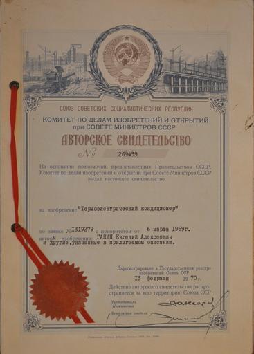 | Keywords: Авторское свидетельство на изобретение Е.А. Ганина, СССР, 1970г. 05.jpg ru Авто ское св-во на изоб етение Е А Ганина Те моэлект ический кондиционе 269459 Выдано Комитетом по делам изоб етений и отк ытий п и Совете инист ов СССР За егист и овано в Госуда ственном еест е изоб етений Союза ССР 13 02 1970г 2015-01-29 13 39 32 Е А Ганин Yanov1991 other versions cc-zero Uploaded with UploadWizard Documents of the Soviet Union | ||||