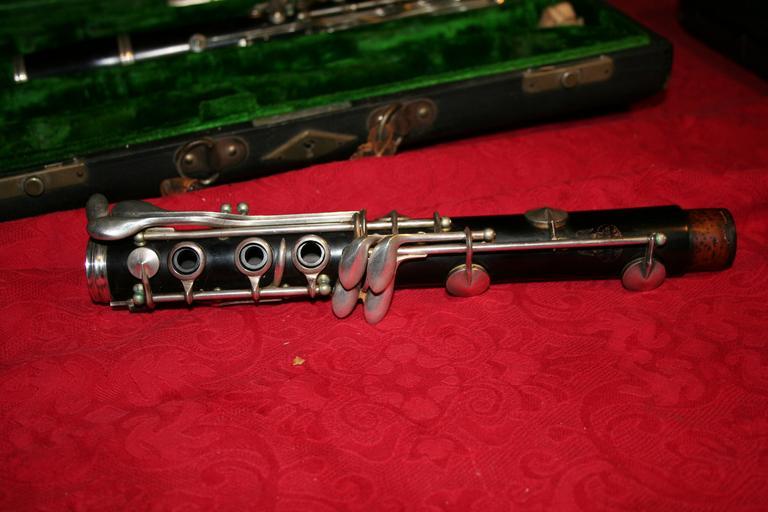 | Keywords: penzal müller mueller clarinet a wood vintage text I know some people will hate me, but when I got this clarinet home, the keys were almost black and my fingers came away gray after handling it. I took some paper towel and toothpaste to the offending keys and bits, which removed the tarnish and got the keys back to their proper appearance. There are still bits of green here or there that I didn't bother with, or wouldn't clean up with the tooth paste. I know some people will hate me, but when I got this clarinet home, the keys were almost black and my fingers came away gray after handling it. I took some paper towel and toothpaste to the offending keys and bits, which removed the tarnish and got the keys back to their proper appearance. There are still bits of green here or there that I didn't bother with, or wouldn't clean up with the tooth paste. |