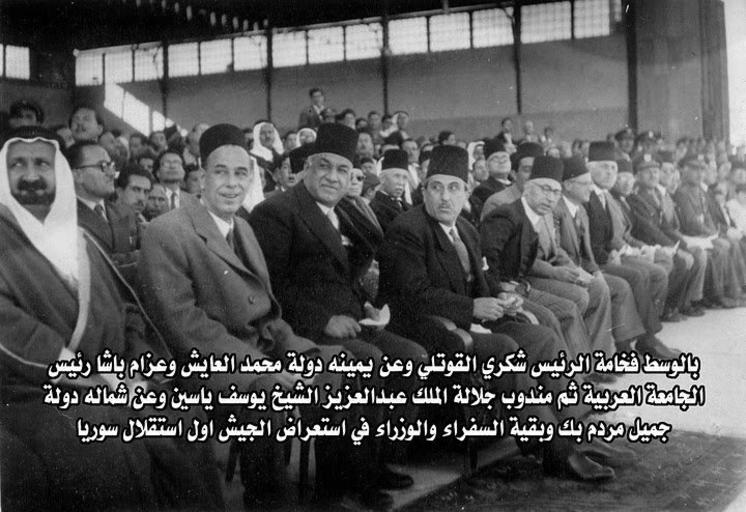 | Keywords: الاحتفال بعيد الجيش الأول في سورية يوم 1 آب 1945.jpg ar الخامس من اليمين مستشار رئيس الجمهورية الامير عادل ارسلان - وزير العدل سعيد الغزي - وزير الخارجية ورئيس الوزارة بالوكالة جميل مردم بك - فخامة رئيس الجمهورية شكري القوتلي - رئيس مجلس النواب بالوكالة محمد العايش - أمين عام جامعة الدول العربية عبد الرحمن عزام الشيخ يوسف ياسين ممثل الملك عبد العزيز آل سعود 2013-12-19 00 40 54 www syrianhistory com موقع التاريخ السوري cc-by-sa-3 0 PD-Syria Mohammed Alayiesh Government ministers of Syria 1945 in Syria |