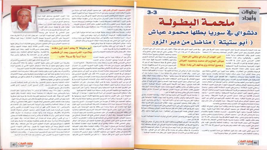 | Keywords: دنشواي في سورية بطلها محمود العياش.jpg ar العرفي، صبحي، ملحمة البطولة - دنشواي في سورية بطلها محمود عيّاش أبو ستيتة مناضل من دير الزور، مجلة منارة الفرات، 2008، كانون الأول، ص 46 2008-11-01 10 28 11 www mforat com العرفي، صبحي، ملحمة البطولة - دنشواي في سورية بطلها محمود عيّاش أبو ستيتة مناضل من دير الزور، مجلة منارة الفرات، 2008، كانون الأول، ص 46 other versions cc-by-sa-3 0 PD-Syria Uploaded with UploadWizard Syrian Ayash Alhaj | ||||