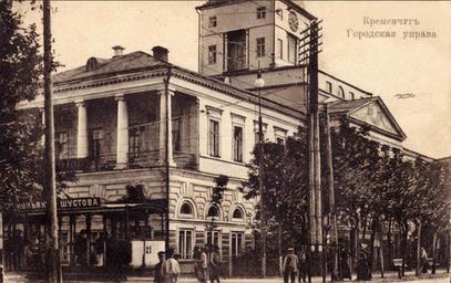 | Keywords: Кременчук Міська управа.jpg Postcards of old Kremenchuk <br> іська уп ава Вулиця Єкате ининська колишній п оспект Революції сучасна Леніна http //www berloga net berloga net ~ 1900 оки Видавництво книжкового магазину Амчиславського і Блюма other`s Author died more than 70 years ago - public domain PD-old History of Kremenchuk |
