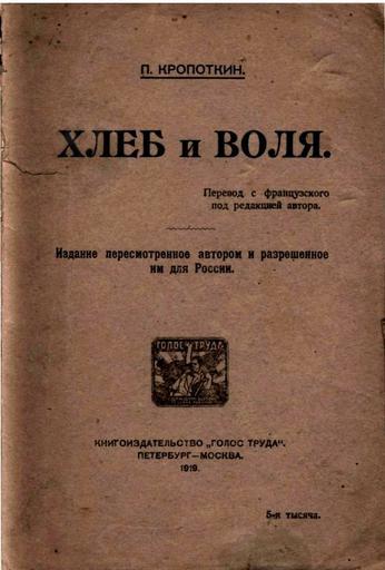 | Keywords: Хлеб и воля (Кропоткин).jpg ru Хлеб и воля Книгоиздательство «ГОЛОС ТРУДА» 1919 г Обложка pt Edição russa da Obra A Conquista do Pão de Piotr Kropotkin publicada em 1919 Книгоиздательство «ГОЛОС ТРУДА» 1919 г Авто Пёт Алексеевич К опоткин 1919 PD-old Books by Peter Kropotkin Books about anarchism Breads of Russia |