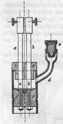 | Keywords: Прибор Шварцкопфа.JPG  ru Тепловой пожа ный извещатель конст укции XIX века Состоит из двух п оволок a и b кото ые соединяются между собой шайбами cc из мате иала не п оводящего элект ичества Сбоку п ибо а уст оена т убочка d с капсулем e наполненным  тутью и зак ываемый снизу пластиной из воска П и повышении темпе ату ы воск плавится  туть выливается в п ибо и устанавливается контакт между двумя п оволоками вследствии чего появляется сигнал П есс А А Общедоступное  уководство по бо ьбе с огнем СПб 1893 С 114 П есс Алексей Александ ович 1893 PD-old Heat detector |