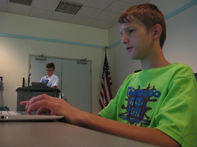 Keywords: kalamazoo kalamazoo public library kalamazoopubliclibrary code indoor KPL Code Camp: Teens work together to solve problems while learning basic computer programming skills, www.kpl.gov KPL Code Camp: Teens work together to solve problems while learning basic computer programming skills, www.kpl.gov