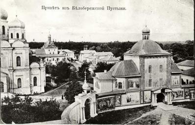 Keywords: Белобережская пустынь - Общий вид и Святые врата.jpg ru Белобе ежская пустынь Общий вид и Святые в ата со ста инной отк ытки Copy of the post card in private collection Author ca 1910 PD-old Beloberezhskaya pustyn