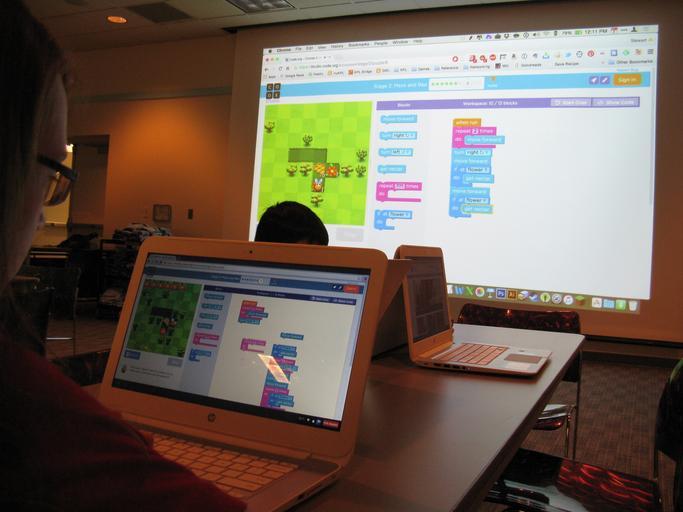 | Keywords: kalamazoo kalamazoo public library kalamazoopubliclibrary code electronics screen indoor computer screen display screen monitor table KPL Code Camp: Teens work together to solve problems while learning basic computer programming skills, www.kpl.gov KPL Code Camp: Teens work together to solve problems while learning basic computer programming skills, www.kpl.gov |
