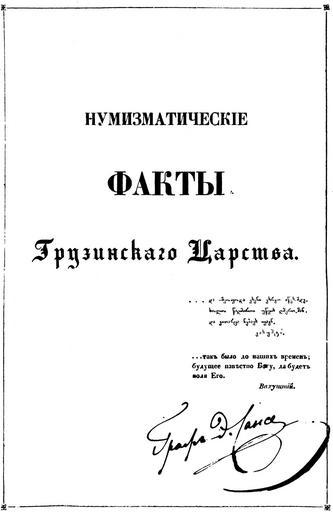 | Keywords: Нумизматические факты Грузинскаго царства. Михаил Петрович Баратаев (князь). Book cover.jpg умизматические факты Г узинскаго ца ства http //books google com/books id MjNFAAAAYAAJ dq умизматические факты Г узинскаго ца ства ихаил Пет ович Ба атаев князь 1844 Mikhail Barataev 1784 1856 PD-Art The Numismatic Facts of the Kingdom of Georgia Mikhail Barataev Scans from Google Books | ||||