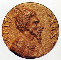 | Keywords: Аттила (медаль).jpg Аттила медаль Из соб ания импе ато а Рудольфа II Скан иллюст ации из книги Otto Zierer Herbert Reinoß Die großen Ereignisse der Weltgeschichte Gütersloch Bertelsmann Reinhard Mohn OHG Buch-Nr 5753 3300 е позже начала XVII в author PD-Art Images of user Vitold Muratov - Nuremberg Attila the Hun |