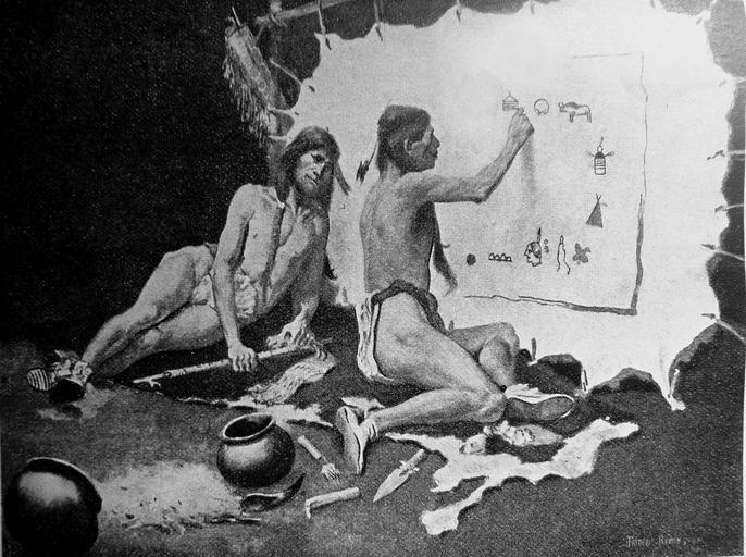 | Keywords: Гайавата создаёт азбуку.jpg Гайавата создаёт азбуку Скан иллюст ации из книги Лонгфелло Песнь о Гайавате Пе евод И А Бунина Изд-во това ищества Знание С Пете бу г 1903 г 1890 Creator Frederic Remington <gallery>File 11 Гл 14 Из мешка он вынул к аски и на гладкой на бе есте много сделал тайных знаков JPG</gallery> PD-old-100 Images of user Vitold Muratov - Painting The Song of Hiawatha Furs in art 1890 in art Stereotypical Plains Indians Paintings of Native Americans by Frederic Remington Bison fur-skins in art |