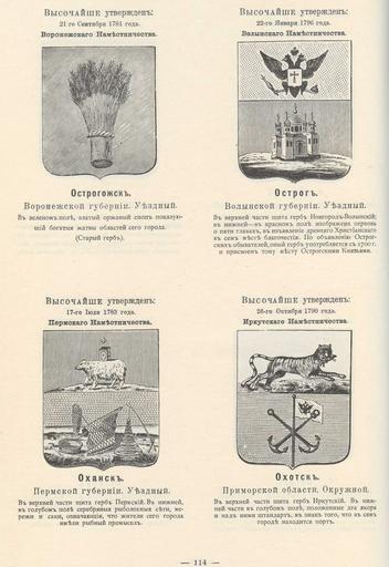 | Keywords: Острогожск Острог Отханск Охотск из Винклера.jpg Official Russian Empire coats of arms Ге бы го одов Российской Импе ии Ост огожск Ост ог Отханск Охотск с официальными описаниями в Ге бовнике Винкле а П П фон-Винкле Ге бы го одов губе ний областей и посадов Российской Импе ии внесенные в Полное Соб ание законов с 1649 по 1900 год Дозволено цензу ою С -Пете бу г 20 Июля 1899 года Издание книгото говца Ив Ив Иванова С -Пете бу г Типог афия И Комелова П яжка д 3 1899 \ Scanned by Vizu 1899 published П П фон Винкле \ Pavel von Vinkler PD-old PD-RusEmpire PD-RU-exempt coats of arms Gerbovnik Vinklera - Pages 114 Coats of arms of cities in Volyn Governorate Coats of arms of Perm Governorate Coats of arms of Primorsk Oblast |