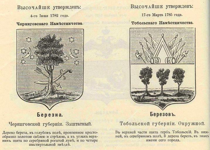 | Keywords: Березна Березов из Винклера.jpg Official Russian Empire 2 canting arms Berezna Berezov Гласные ге бы го одов Российской Импе ии Бе езна Че ниговской губе нии Бе ёзов Тобольской губе нии с официальными описаниями в Ге бовнике Винкле а П П фон-Винкле Ге бы го одов губе ний областей и посадов Российской Импе ии внесенные в Полное Соб ание законов с 1649 по 1900 год Дозволено цензу ою С -Пете бу г 20 Июля 1899 года Издание книгото говца Ив Ив Иванова С -Пете бу г Типог афия И Комелова П яжка д 3 1899 / Scanned by Vizu 1782 1785 / 1899 published П П фон Винкле / Pavel von Vinkler PD-old PD-RusEmpire PD-RU-exempt coats of arms Gerbovnik Vinklera - City CoAs Coats of arms of Chernigov Governorate Coats of arms of Tobolsk Governorate Trees in heraldry Russian canting arms |