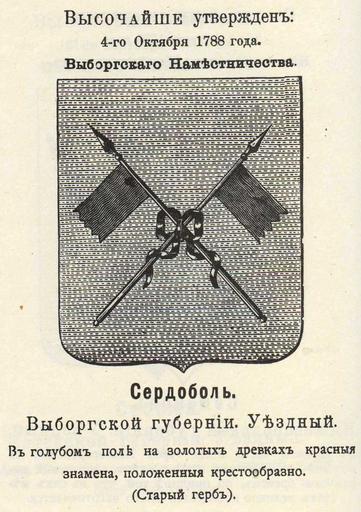 | Keywords: Сердоболь из Винклера.jpg Official Russian Empire coat of arm Serdobol Ге б Российской Импе ии уездного го ода Се доболь Выбо гской губе нии с официальным описанием в Ге бовнике Винкле а П П фон-Винкле Ге бы го одов губе ний областей и посадов Российской Импе ии внесенные в Полное Соб ание законов с 1649 по 1900 год Дозволено цензу ою С -Пете бу г 20 Июля 1899 года Издание книгото говца Ив Ив Иванова С -Пете бу г Типог афия И Комелова П яжка д 3 1899 \ Scanned by Vizu 1788 \ 1899 published П П фон Винкле \ Pavel von Vinkler PD-old PD-RusEmpire PD-RU-exempt coats of arms Gerbovnik Vinklera - City CoAs Coats of arms of Sortavala |