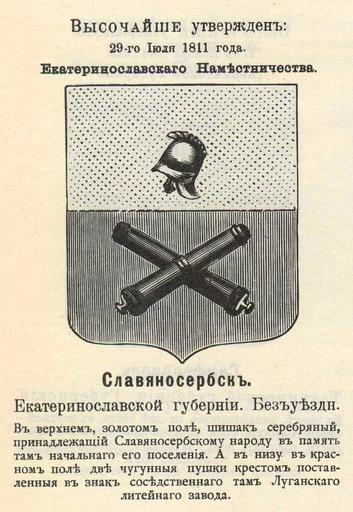 Keywords: Славяносербск из Винклера.jpg Official Russian Empire coat of arm Ге б Российской Импе ии безъуездного го ода Славяносе бск Екате инославской губе нии с официальным описанием в Ге бовнике Винкле а П П фон-Винкле Ге бы го одов губе ний областей и посадов Российской Импе ии внесенные в Полное Соб ание законов с 1649 по 1900 год Дозволено цензу ою С -Пете бу г 20 Июля 1899 года Издание книгото говца Ив Ив Иванова С -Пете бу г Типог афия И Комелова П яжка д 3 1899 \ Scanned by Vizu 1811 \ 1899 published П П фон Винкле \ Pavel von Vinkler PD-old PD-RusEmpire PD-RU-exempt coats of arms Gerbovnik Vinklera - City CoAs Coats of arms of Ekaterinoslav Governorate |