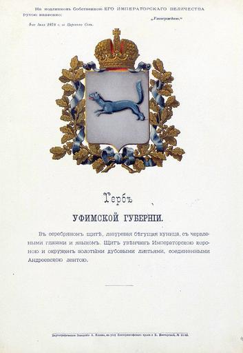 Keywords: Уфимская губерния из Бенке.jpg Official Russian Empire coat of arms Ufa Governorate Ге б Российской Импе ии Уфимской губе нии с официальным описанием в Ге бовнике ВД Российской Импе ии издания Бенке 1880 года Утве ждён Импе ато ом Все оссийским Александ ом Вто ым 5 июля 1878 года Ге бы губе ний и областей Российской Импе ии Отпечатано по аспо яжению минист а внут енних дел Санкт-Пете бу г Ка тог афическое заведение А А Ильина и типог афия инисте ства путей сообщения А Бенке 1880 / Scanned on paper album 1878 / 1880 published Russian Empire PD-old PD-RusEmpire PD-RU-exempt coats of arms <gallery> File Уфимская губ ВД Бенке jpg File Уфимская губе ния изд Сукачова JPG File Coat of Arms of Ufa gubernia Russian empire png </gallery> Coats of arms of Ufa Governorate Gerbovnik Benke |