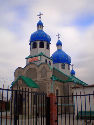 Keywords: Николаевская Церковь.JPG Church of St Michael in Novoazovsk Ukraine Святомиколаївська це ква в м овоазовськ Ук аїна Святониколаевская Це ковь в г овоазовске Фото 9 03 07 Urutseg Churches in Novoazovsk Onion domes in Ukraine Novoazovsk User Urutseg