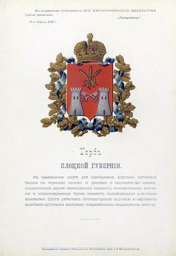 | Keywords: Плоцкая губерния из Бенке.jpg  Official Russian Empire coat of arms Plotsk Governorate Ге б Российской Импе ии Плоцкой губе нии с официальным описанием в Ге бовнике Бенке Утве ждён Импе ато ом Все оссийским Александ ом Вто ым Ге бы губе ний и областей Российской Импе ии Отпечатано по  аспо яжению минист а внут енних дел Санкт-Пете бу г Ка тог афическое заведение А А Ильина и типог афия  инисте ства путей сообщения А Бенке 1880 / Scanned on paper album 1869 / 1880 published Russian Empire PD-old-100 PD-RusEmpire PD-RU-exempt coats of arms <gallery> File Плоцкая губ  ВД Бенке jpg File Плоцкая губе ния изд Сукачова jpg File Coat of Arms of Płock gubernia Russian empire png </gallery> <references/> Coats of arms of Plotsk Governorate Gerbovnik Benke Towers in heraldry Wheat garbs in heraldry |