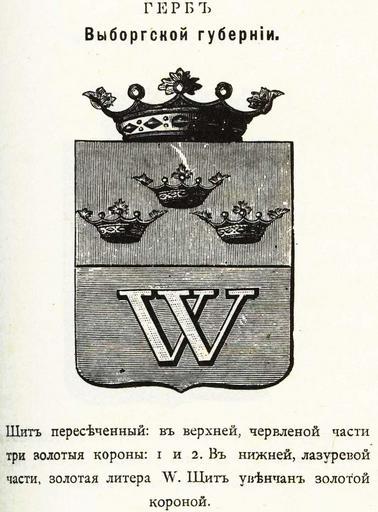 | Keywords: Выборгская губ из Винклера.jpg Official Russian Empire coat of arms Wyborg Governorate Гласный ге б Выбо гской губе нии Российской Импе ии Великого Княжества Финляндского с официальным описанием в Ге бовнике Винкле а П П фон-Винкле Ге бы го одов губе ний областей и посадов Российской Импе ии внесенные в Полное Соб ание законов с 1649 по 1900 год Дозволено цензу ою С -Пете бу г 20 Июля 1899 года Издание книгото говца Ив Ив Иванова С -Пете бу г Типог афия И Комелова П яжка д 3 1899 \ Scanned by Vizu 1899 published П П фон Винкле \ Pavel von Vinkler PD-old-100 PD-RusEmpire Gerbovnik Vinklera - Governorate Oblast CoAs Russian canting arms W in heraldry Coats of arms of Wyborg Governorate Coats of arms of Province of Viipuri |