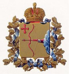 | Keywords: Вятская губерния МВД Бенке.jpg Official Russian Empire coat of arms Viatka Governorate Ге б Российской Импе ии Вятской губе нии в Ге бовнике инисте ства внут енних дел Российской Импе ии Утве ждён Импе ато ом Все оссийским Александ ом Вто ым Ге бы губе ний и областей Российской Импе ии Отпечатано по аспо яжению минист а внут енних дел Санкт-Пете бу г Ка тог афическое заведение А А Ильина и типог афия инисте ства путей сообщения А Бенке 1880 / Scanned on paper album 1856-12-08 / 1880 published Russian Empire PD-old-100 PD-RusEmpire PD-RU-exempt coats of arms <gallery> File Вятская губе ния из Бенке jpg File Вятская губе ния изд Сукачова JPG File Coat of Arms of Vyatka gubernia Russian empire png File Вятка 1781 из Винкле а jpg </gallery> <references/> Coats of arms of Viatka Governorate Gerbovnik Benke Crosses in heraldry Hands in heraldry Bow and arrow in heraldry |