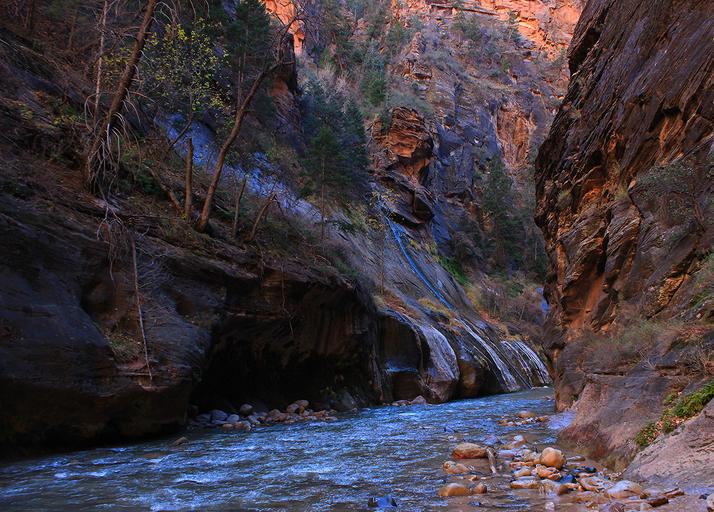 Keywords: zion national park outdoor landscape waterfall water cave cavern canyon watercourse river Zion National Park Zion National Park