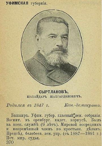 | Keywords: Сыртланов.jpg en Bashkir deputy Syrtlanov from Ufa province ru Депутат госуда ственной думы от Уфимской губе нии Сы тланов Шахайда Шахга данович 1906-12-31 Book State Duma Our Deputy first convocation Moscow 1906 book in public domain Boyovich M M PD-old Shahaydar Syrtlanov |