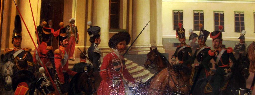 | Keywords: Русская гвардия в Царском Селе в 1832 году (фрагмент 5).jpg Ф анц К юге 1797-1857 Русская гва дия в Ца ском Селе в 1832 году 1841 Холст масло en Franz Krüger 1797-1857 Russian Guards at Tsarskoye Selo in 1832 Oil on Canvas 1841 По т етный зал Александ овского дво ца го од Пушкин Сейчас находится на экспозиции в Каме оновой гале ее Creator Franz Krüger Other versions/Russian Guards at Tsarskoye Selo in 1832 PD-old-100 Portrait paintings in 19th-century military uniforms of Russia Franz Krüger Military fur headdress Paintings by Franz Krüger with fur Fur fashion in 1832 |