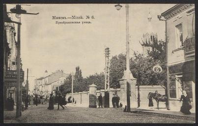 Keywords: Улица Преображенская.jpg ru Улица П еоб аженская бывшая Сбо овая ныне Инте национальная на пе ек естке с Богадельной бывшей Фелициановской ныне Комсомольской 1915 http //darriuss livejournal com/455022 html thread 3220334 PD-old Uploaded with UploadWizard Internacyjanaĺnaja Street Minsk