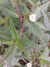 | Keywords: கரிசலாங்கண்ணி(வெள்ளை)5.jpg en Botanical name - Eclipta prostrata Common name - False Daisy Tamil name KARISALAANG KANNI blackening plant Leaf extract is a liver tonic; Black dye from Eclipta prostrata is used for dyeing hair;Traditional medicine for athlete's foot eczema and dermatitis; Used as anti-venom against snakebite; For children it removes phlegm; It cures wounds ; For jaundice it is a traditional medicine Picture- False daisy's another view ta கரிசலாங்கண்ணி வெள்ளை வேறு தமிழ்ப் பெயர்கள் -கையாந்தரை கரப்பான் கரிசாலை; கைகேசி கைவ சி கரியசாலை கரிப்பான் கையான் ஆயுள் ந டிக்கும் ; பித்தத்திற்கு மருந்து இது;புற்று நோய்க் கிருமிகளைக் கொல்லும்;ஈரல் வ க்கத்திற்கு மருந்தாகக் கொடுக்கப்படுகிறது;மஞ்சள் காமாலைக்கு இது மருந்து;பெண்களின் பெரும்பாட்டுக்கு மருந்தாகும்; குழந்தைச் சளிக்குப் பரம்பரை மருந்து இதுவாகும்; இரும்புச் சத்தும் வைட்டமின் ஏயும் உள்ளன;க ரையாக இலையை உண்ணலாம்;திப்பிலிப் பொடியுடன் ஆஸ்த்மா மருந்தாகத் தருவர்;தலைப் பொடுகிற்கு இதனை மருந்தாகத் தருவர்;இலையைப் பல் துலக்கப் பயன்படுத்துவர்;இலைச் சாறு அழுகிய புண்களை ஆற்றும் என்பர் படம்- வெள்ளைக் கரிசலாங்கண்ணியின் இன்னொரு தோற்றம் Own research Dr S Soundarapandian 2013-10-16 Own field work Shot in Chennai Tamilnadu India 4 5 kms off sea-shore ; Latitude-13°02'20 N ; Longitude- 80°13'43 E ; Elevation from sea level - 6 7 m Cc-zero Unidentified Asteraceae |
