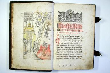 | Keywords: Лествица Иоанна Синайского.jpg ru Лествица Иоанна Синайского XVIII век 222 листа аписана полууставом заголовки и инициалы выполнены кинова ью 2 миниатю ы Г ави ованная заставка из ста опечатного издания Пе еплёт доски обтянутые кожей с тиснением 2 застёжки П оисходит из ило-Со ской пустыни Х анится в Ки илло-Белозе ском музее 2000-05-29 http //www kirmuseum ru/info/collection/detail php ID 2267 author PD-Art Uploaded with UploadWizard Museum of Kirillo-Belozersky Monastery Church of St John Climacus Kirillo-Belozersky monastery |
