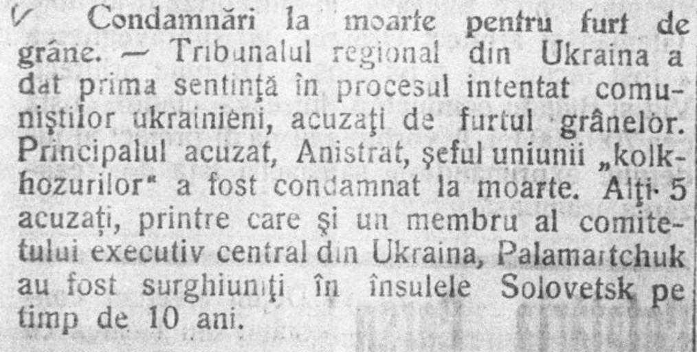 Keywords: Засуджений до смерті за крадіжку зерна.jpg uk ате іали д укованої п еси науково-довідкової бібліотеки де жавного а хіву Че нівецької області які висвітлюють події Голодомо у на Ук аїні 1932 1933 оків Газета Glasul Bucovinei 20 січня 1933 3973 с 4 Author 1933 Holodomor Glasul Bucovinei PD-old Funds of state archive of Chernivtsi Oblast |