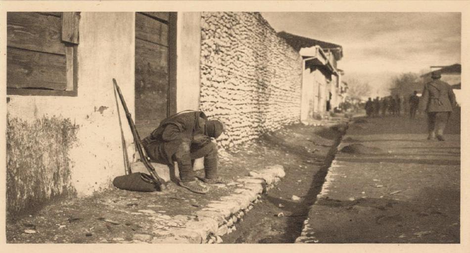 Keywords: У изгнанству.JPG sr У изгнанству фотог афија Самсона Че нова објављена у албуму Петогодишњи ат С би 1912-1916 у Лондону 1916 године The image is taken from http //www srpskilist net/istorijski-osvrt/petogodisnji-rat-srbi-1912-1916 here but originally comes from an album The Five Years War The Serbs in 1912-1916 published in London in 1916 Tchernoff Sampson 1915 PD-old World War I forces of Serbia 1915 in Serbia Sampson Tchernoff Crying men