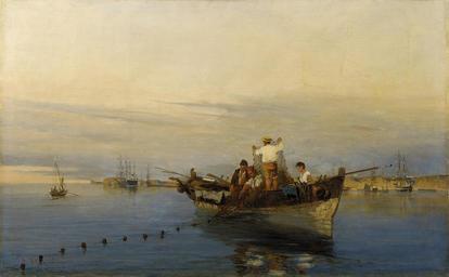 Keywords: Κωνσταντίνος Βολανάκης - Χύτευση τα δίχτυα.jpg Artwork Creator Constantine Volanakis oil canvas cm 44 71 object history credit line Private collection Athens Κ Βολανάκης ~ lower left signature accession number http //www bonhams com/auctions/14220/lot/48/ Bonhams 2006 PD-old-100 DEFAULTSORT Constantinos_Volanakis_-_Casting the nets Constantine Volanakis Paintings of fishermen sitting in boats Fishing nets in art Paintings of boats Oil paintings of seascapes Images from Bonhams |