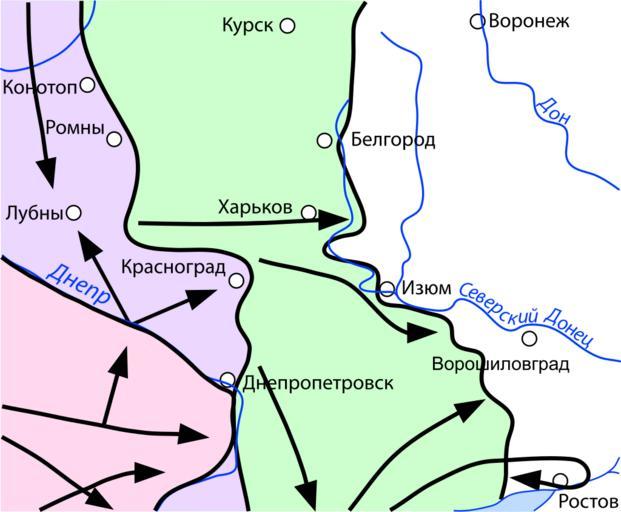 | Keywords: Восточный фронт в районе Харькова с июня по декабрь 1941 года.svg English Eastern front of the Second World War in the vicinity of Kharkov and Belgorod A possibly useful 300-pixel-wide map for the first battle of Kharkov Pink area is captured by Germans up to September 1st 1941 Purple area is captured by Germans up to September 9th 1941 Green area is captured by Germans up to December 5th 1941 Русский Ка та боевых действий на Восточной Ук аине осень 1941 года Цветом обозначены захваченные Ге манией те ито ии Розовый к 1 сентяб я; Фиолетовый к 9 сентяб я; Зелёный к 5 декаб я en Eastern front of the Second World War in the vicinity of Kharkov and Belgorod A possibly useful 300-pixel-wide map for the first battle of Kharkov ru Ка та боевых действий на Восточной Ук аине осень 1941 года own Vasyatka1 2009-11-05 Собственная абота выполненная в Adobe Illustrator на основе png-ка т выложенных на Викискладе А именно в качестве исходника использовался файл 30 px border Maps of the Eastern Front in World War II First Battle of Kharkov |