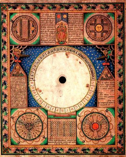 Keywords: Календарная стенка.jpg ru Календа ная стенка Се едина XIX в Русский лубок еизвестный художник Че нила темпе а белила 52x43 5 а стенке азмещены таблицы исчисления дней «часов» а также изоб ажения звездного неба птиц Си ин и Алконост и д В цент е помещен к уг с буквенным обозначением чисел и отве стием посе едине куда к епился в ащающийся диск XIX c http //www bibliotekar ru/rusLubok/68 htm author PD-Art-100 Sirin Alkonost Uploaded with UploadWizard Slavic folk calendar in Russia Calendars of Russia