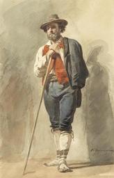 Keywords: Василий Петрович Верещагин - Итальянские мужчины в традиционных костюмах.jpg Artwork Creator Vasily Petrovich Vereshchagin An Italian in native dress watercolor paper cm 29 18 object history credit line signed in Cyrillic lower right accession number http //www bonhams com/auctions/18991/lot/2/ Bonhams PD-old-100 Paintings by Vasily Petrovich Vereshchagin Portrait paintings of men Watercolor paintings Images from Bonhams