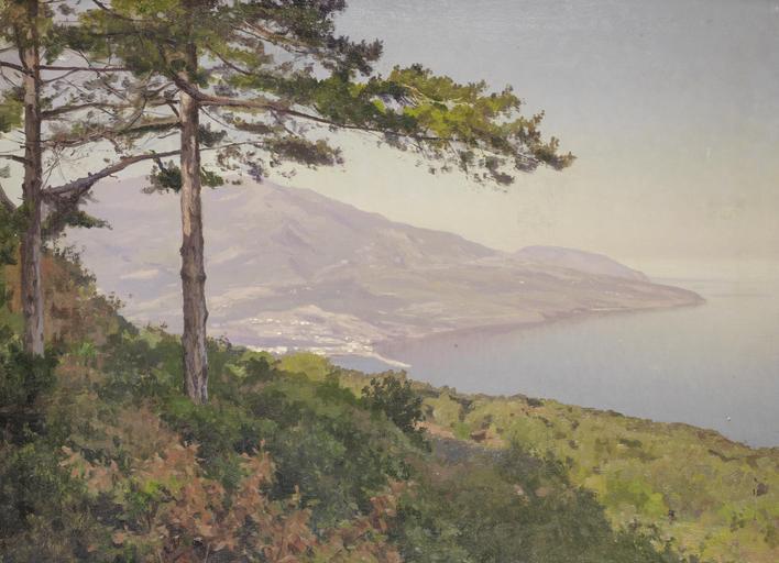 Keywords: Иосиф Евстафиевич Крачковский - Вид на побережье Крыма.jpg Artwork Creator Iosif Krachkovsky en View of the Crimean coast 1902 oil canvas cm 54 72 object history Provenance Private collection of Prince Youssoupoff Soumarokoff-Elston credit line signed and dated 1902 lower right accession number http //www bonhams com/auctions/19964/lot/18/ Bonhams PD-old-auto-1923 1914 Iosif Krachkovsky Yalta in art Black Sea in painting 1902 paintings from Russia Images from Bonhams