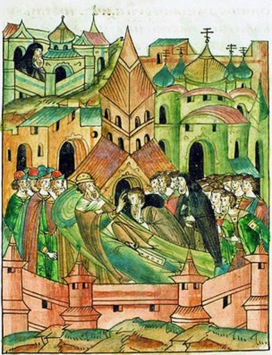 | Keywords: Архиепископ Далмат перед смертью благословляет игумена Давида в преемники.jpg ru А хиеп Далмат пе ед сме тью благословляет игум Давида в п еемники иниатю а из Лицевого летописного свода 70-е гг XVI в БА 30 7 30 Л 77 об 1670-е http //www pravenc ru/text/168494 html не указан Custom license marker 2012 06 19 PD-old-100 Uploaded with UploadWizard Bishops of the Russian Orthodox Church Orthodox bishops of Russia Facial Chronicle v 6 - Ostermanovskiy 1-y tom 1254-1378 Death in medieval miniatures Russia |